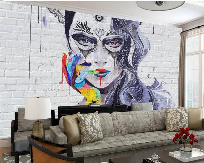 Текстурная графика и роспись на стене сделают интерьер неповторимым, красочным.