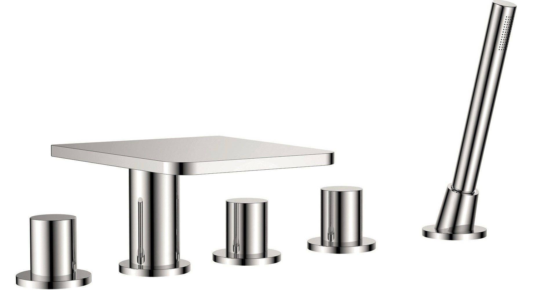 Немецкая модель, выделяющаяся отдельными ручками управления водой – они располагаются на стене либо раковине. Свободное расположение доступно за счет широкой разводки труб – достаточно разместить ручки рядом с водопроводом, а сам кран расположите в любом другом месте.