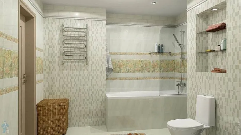 Грация -плитка для ванной комнаты, в спокойных и бежевых тонах с тонким абстрактным рисунком. Декоративные дополнения, бордюры и плинтусы создают умиротворяющую атмосферу – идеальные условия для водных процедур.