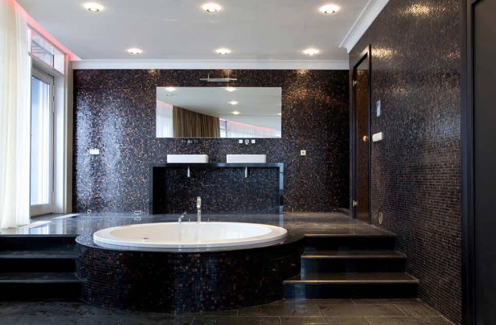 – стеклянная плитка. Самое дорогое удовольствие из представленного ряда, способное воплотить самые безумные фантазии в интерьере ванной комнаты. Данный вид плитки может быть использован не только для отделки стен и полов, но и для декорирования.