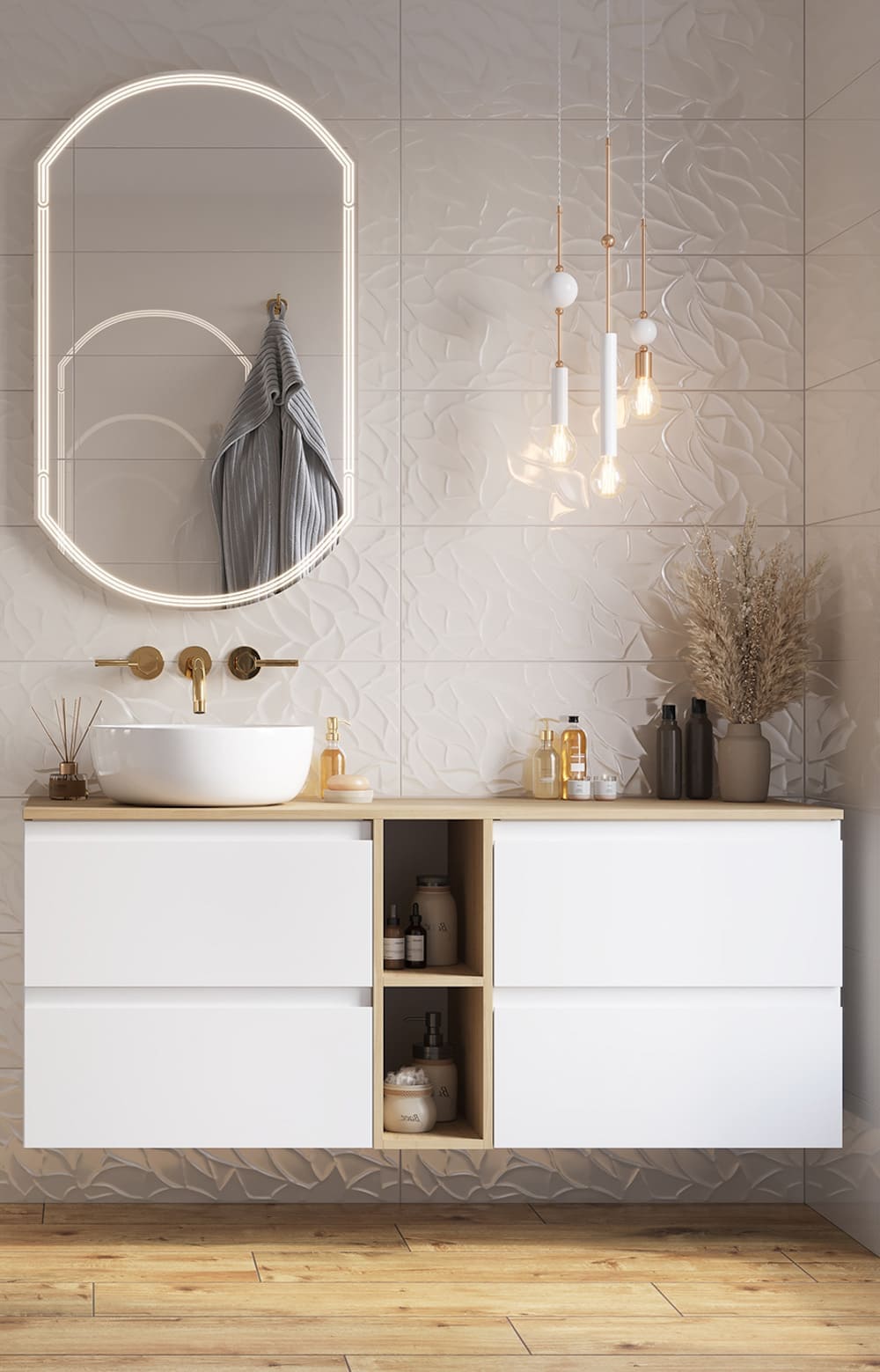 Независимо от выбора цвета, керамическая плитка 2022 может сочетаться со структурированной поверхностью в определенной части помещения. Дизайнеры обычно выбирают для выделения одну зону — например, за ванной. Структурированная стена дополнительно подчеркивает интерьер. Если выбор плитки хорошо продуман и соответствует остальному декору, она будет радовать вас долгие годы.
