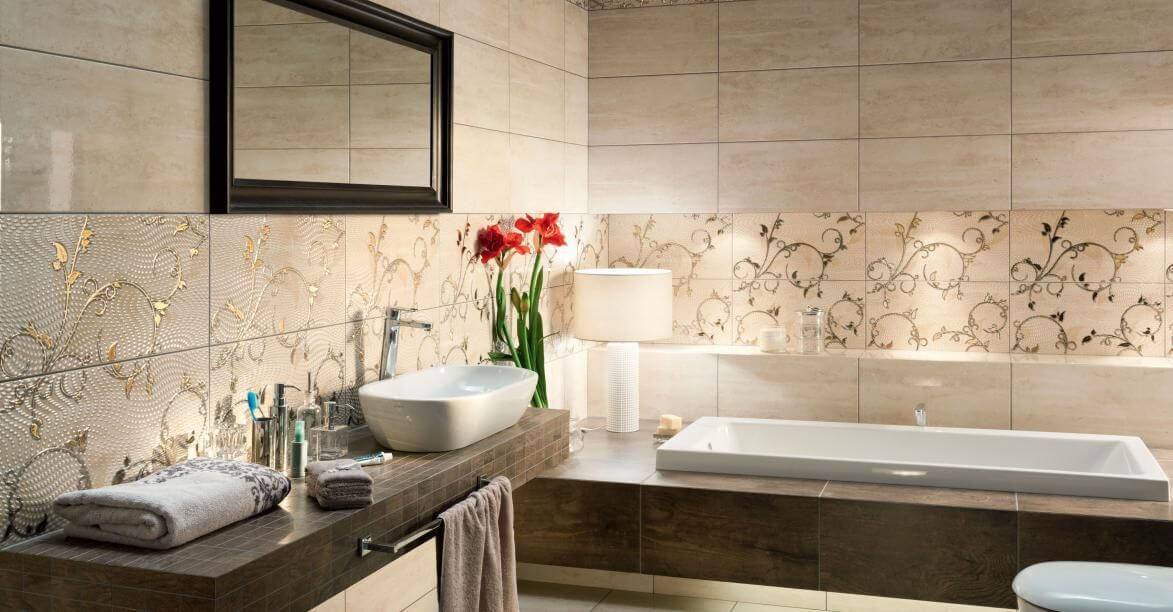Крупная плитка на стенах в ванной не выглядит эффектно. Она здесь неуместна, ее придется делить, к тому же из-за большого формата могут возникнуть проблемы с установкой сантехнических люков под плитку. Габаритные изделия лучше использовать для отделки пола, а для стен подойдут размеры – 45х20, 50х20, 50х25, 60х30. Облицовка выглядит эстетично, когда вдоль одной стены располагается не более 6 фрагментов. Ориентируясь на этот совет, можно подобрать изделия подходящей ширины.