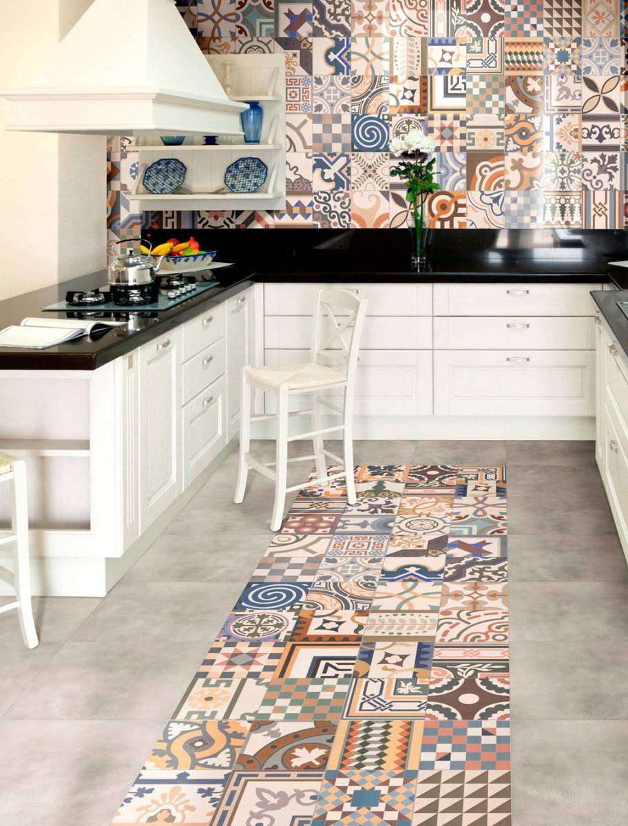 Дизайн пола и фартука может повторять друг друга или представлять собой абсолютно разные по цвету и текстуре поверхности.