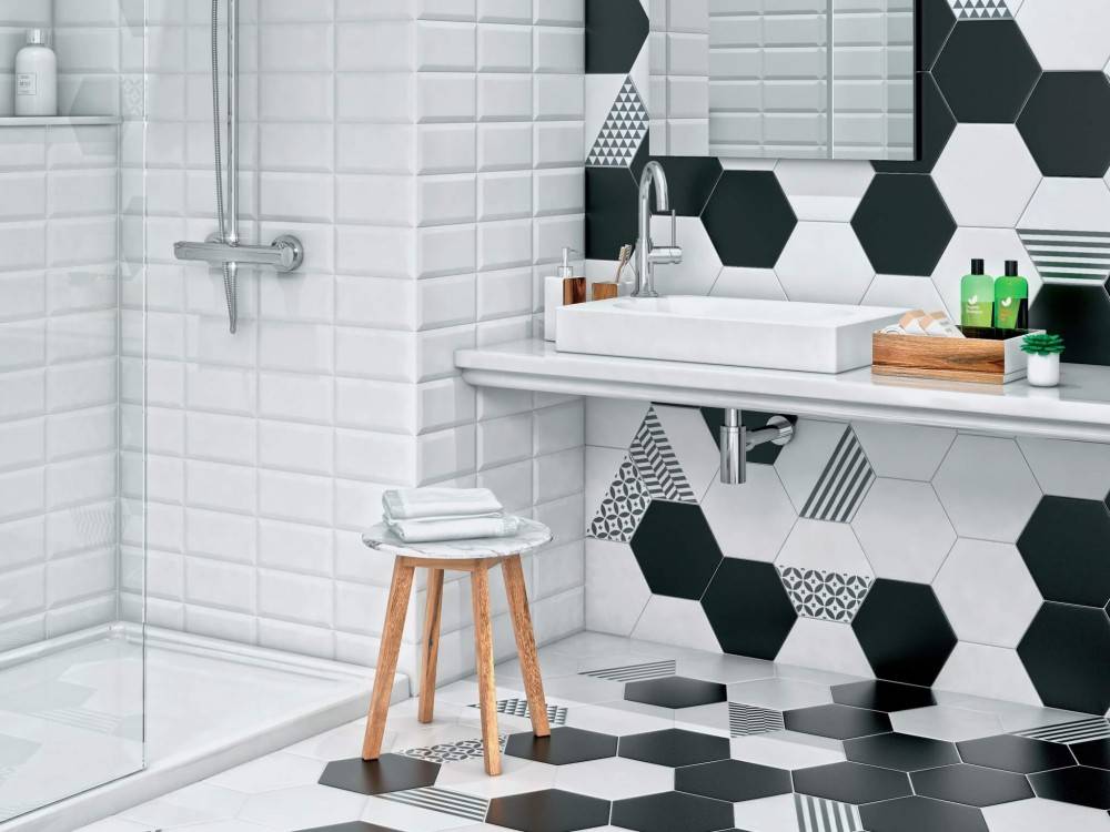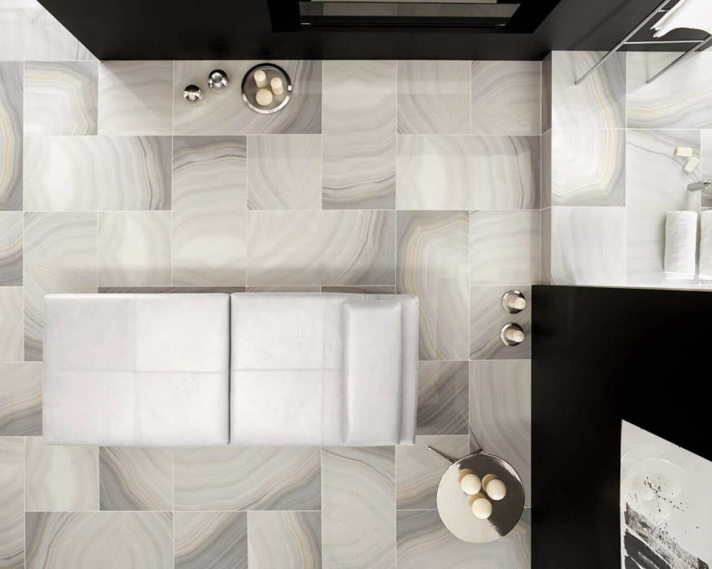 Как и керамическая плитка, керамогранит чаще всего применяют в ванных комнатах и кухнях. Благодаря абсолютной защите от влаги и гигиеничности он идеален даже в самых мокрых зонах, вроде пространства над ванной или в душевой.