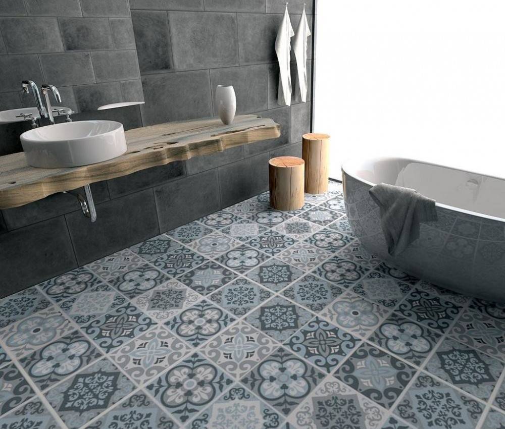 Большая цветовая гамма и варианты фактур (мрамор, бетон, гранит, древесина, мозаика) позволяют сделать стены и пол максимально подходящими друг другу и вписать их в нужный стиль интерьера. В классическом, например, лучше смотрится мрамор. В современном — геометрические узоры или плитки в восточном стиле. Санузел в стиле лофт дополнит дизайн пола и стен под бетон.