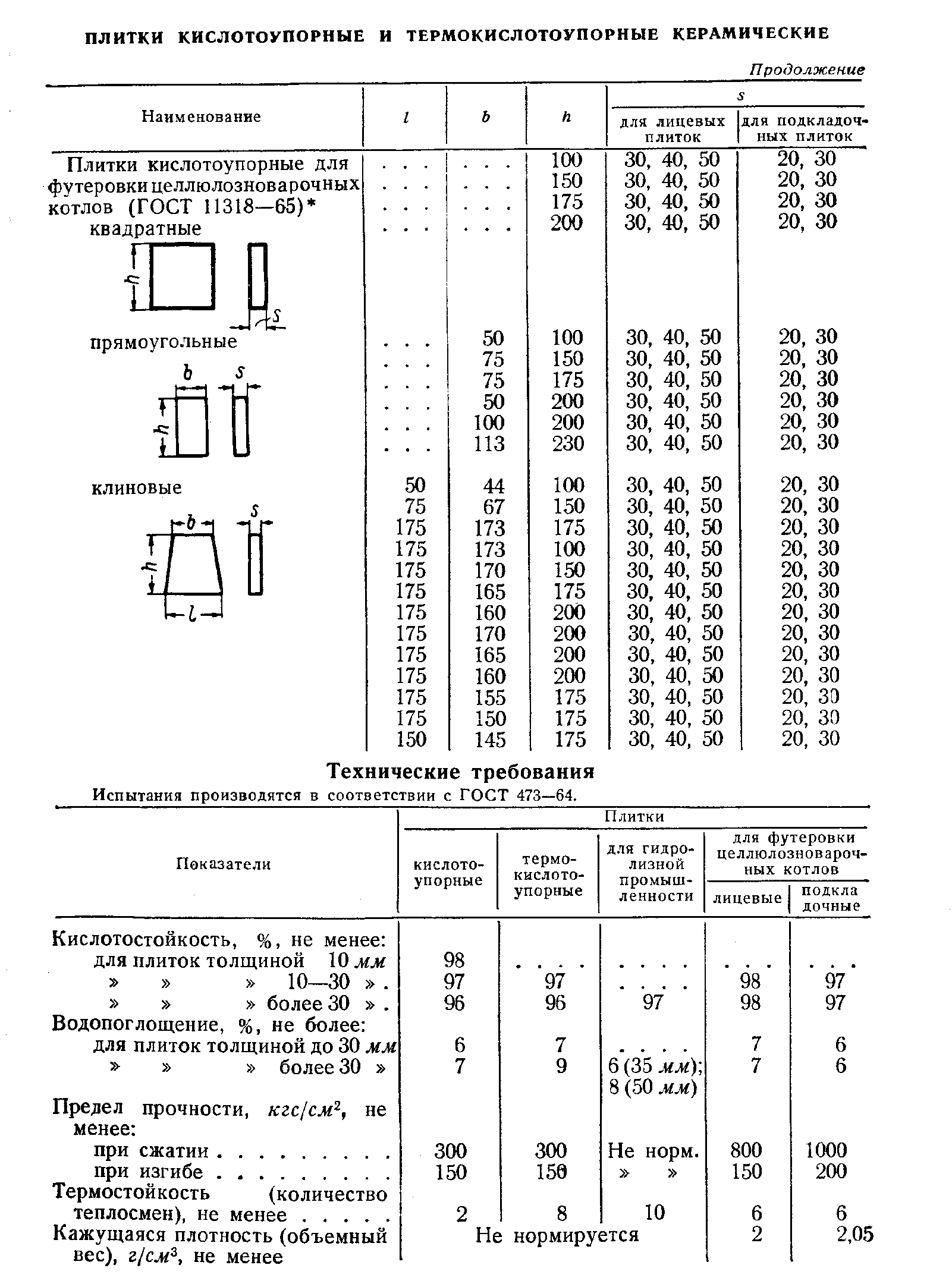 по три — на водопоглощение, предел прочности при сжатии, предел прочности при статическом изгибе и термическую стойкость;