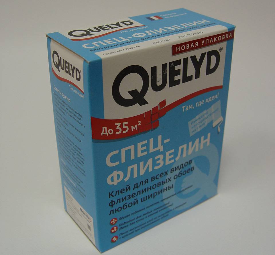 На фото- клей для виниловых обоев на флизелиновой основе Quelyd