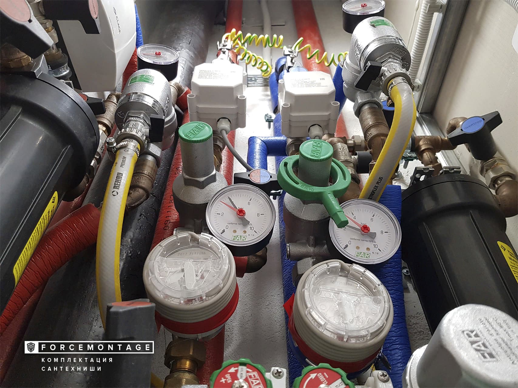 Чаще входную дверь рекомендуют устанавливать после окончания черновых работ, то есть после заливки стяжек и прокладки коммуникаций. Ну что же, есть логика и в этом (ошибиться с уровнями невозможно, стены подготовлены, демонтажи пройдены, влажность нормализирована) но только если ваш дом более-менее благополучен в плане охраны (есть камеры наблюдения, сидит консьерж…). В данном случае нужно иметь в виду, что хорошо следует продумать точки выводов коммуникаций, расположенных возле проёма, чтобы потом не пришлось их переносить при замене двери, а это кроме силового электричества – слаботочка, добавим сюда ещё и ящик ВРУ. Ещё одна распространённая ошибка установки двери на данном этапе: строители могут закончить разводку, но забыть (особенно, если их не предупредить) подвести к проёму сигнальный или силовой электрический провод, которые бывают нужны, если конструкция содержит электромеханические замки или сигнализацию. В новостройках не стоит упускать из виду трубы отопления и водоснабжения, которые при коллекторной системе иногда заходят в квартиру по полу, причём именно через проём, под порогом двери. То есть нужно заранее позаботиться, чтобы трубы не мешали и не были повреждены во время монтажа двери и откосов. Очевидно, что мероприятия по защите двери плёнкой при этом способе монтажа тоже необходимы.