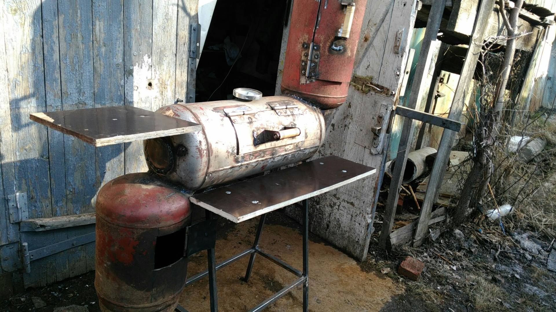 Большой объем и металлические стенки делают баллон пригодным для изготовления разных устройств, внутри которых можно коптить и жарить разные продукты.