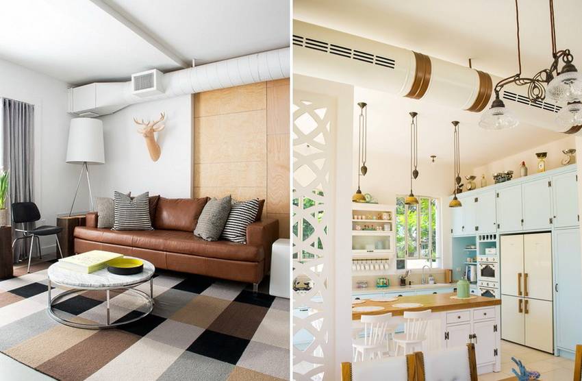Пластиковые воздуховоды в квартире не только удобны, но их можно стильно обыграть, создав уникальный дизайн