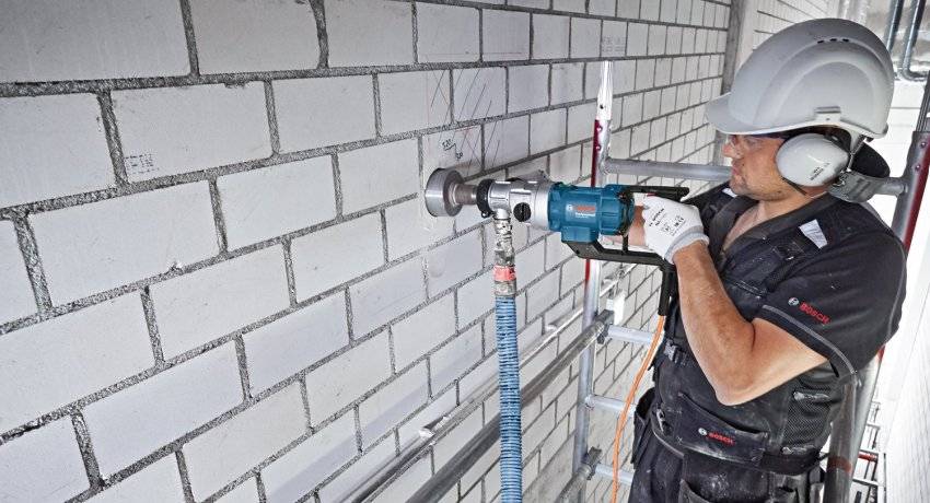 Внимание! В бетонных стенах целесообразно использовать только перфоратор, а в кирпичных и алебастровых – можно применить ударную дрель мощностью не менее 800Вт
