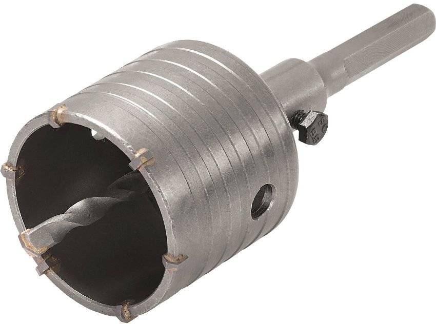 Этот инструмент позволяет сделать отверстие с идеально ровными краями. Коронки выпускают с центровочным сверлом или без него. Если работа выполняется дрелью или перфоратором, необходима коронка с центровочным сверлом, так как удержать ее в правильном положении будет трудно и качество работы ухудшится. Идеальный результат получается на стационарных сверлильных станках. Выпускают коронки для применения их с УШМ. Они работают на высоких оборотах машины.