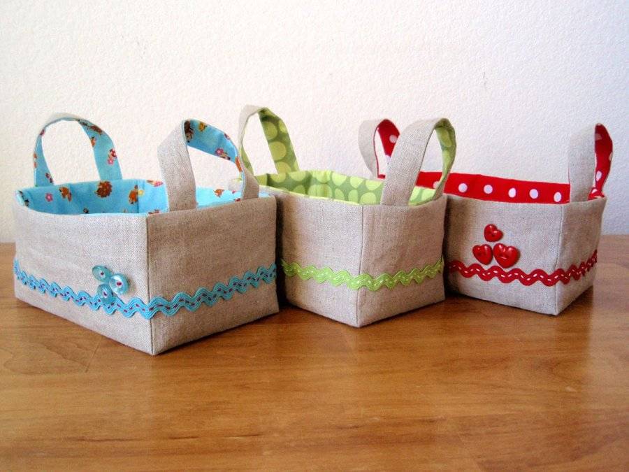 Льняная ткань подчеркнёт натуральность ручной работы, благодаря ватину корзинка будет объёмнее, а яркая внутренняя ткань и декор позволит дать волю фантазии.