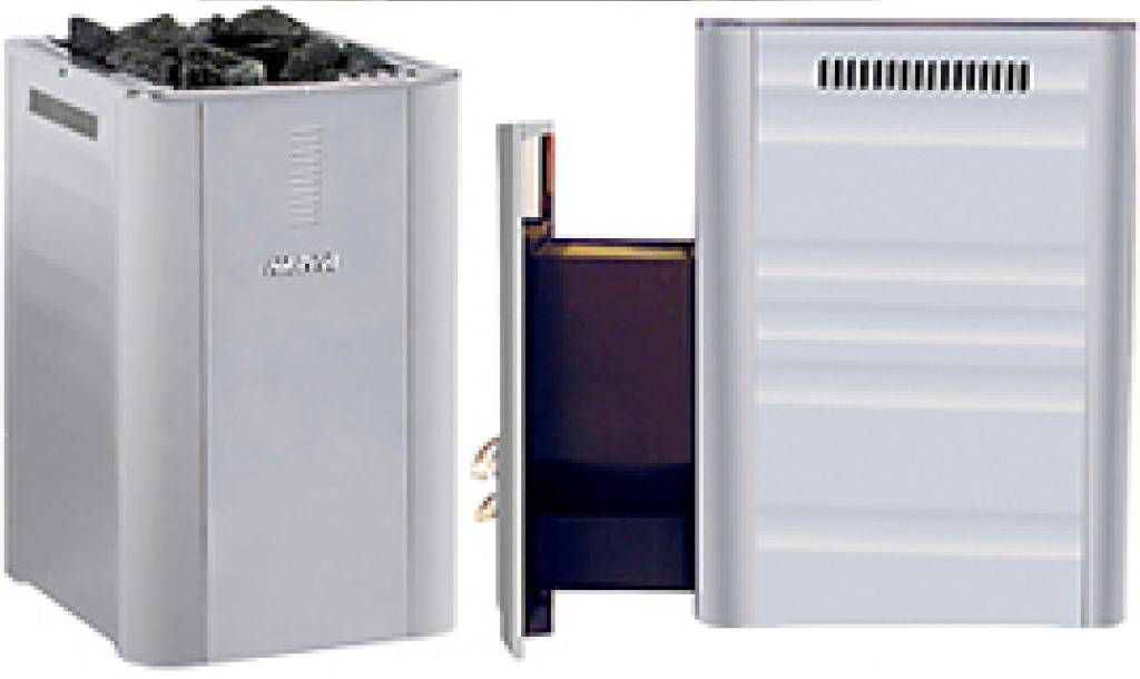 Внешний кожух агрегата выполнен из нержавеющей стали, имеется чугунная дверца со стеклом, чтобы дополнить особую атмосферу сауны отблесками огня.