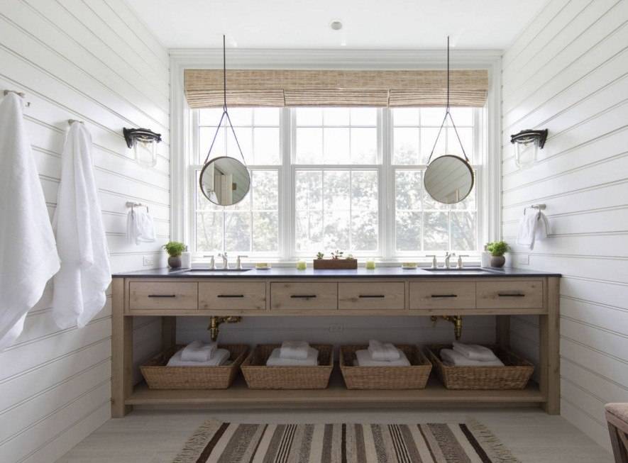 Дополнительный уют придадут маленькие шкафчики для всякой мелочевки, плетеные корзины под крема, расчески, бытовую химию (их можно купить сразу нескольких размеров), всевозможные полки. В зависимости от того, какой характер носит ваша ванная, выбирайте предметы для нее:
