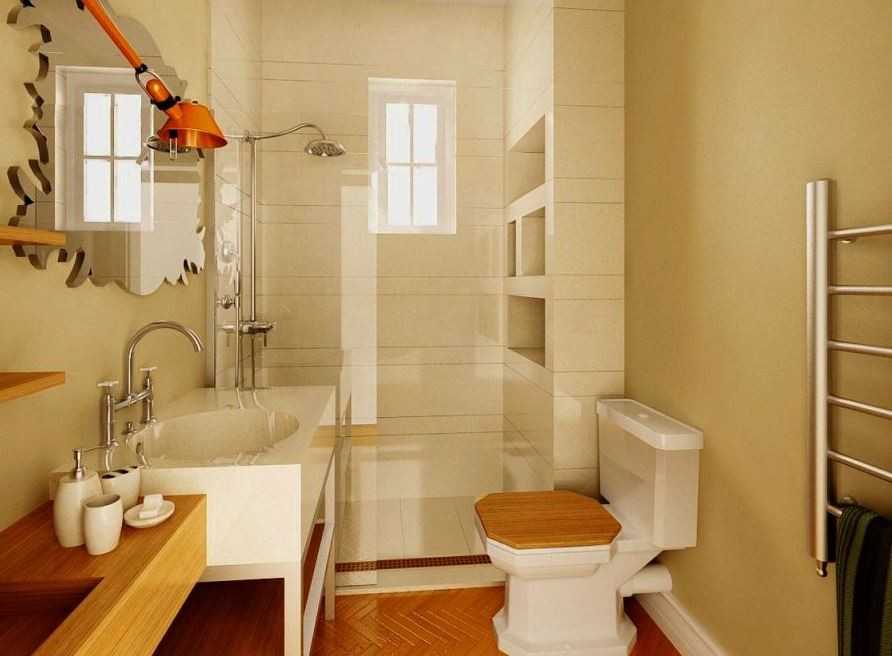 В таких домах опытные дизайнеры рекомендуют совместить ванную и санузел в одной комнате. Для этого перегородку аккуратно разбирают. Это позволяет получить уютную зону. Визуально увеличить пространство, помогает светлый кафель и натяжные глянцевые потолки.