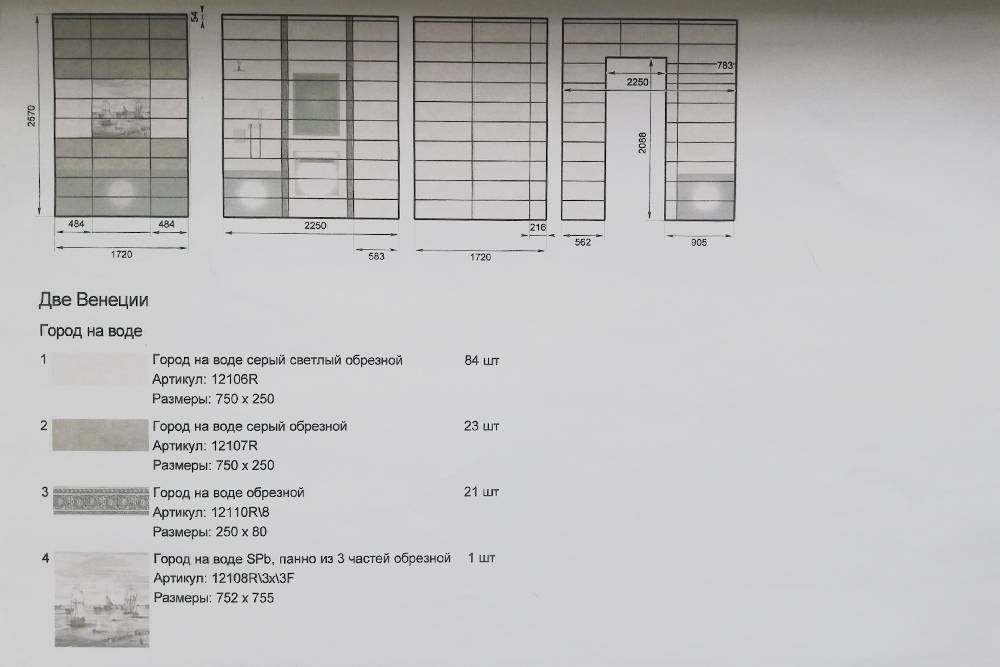 В итоге мне сделали проект с более дорогой плиткой. Она называлась «Две Венеции» и вся была в наличии. Но обошлась бы в 75 000 Р, а для меня это было слишком дорого. В общем, я просто заплатил за ненужный проект и ушел из магазина.