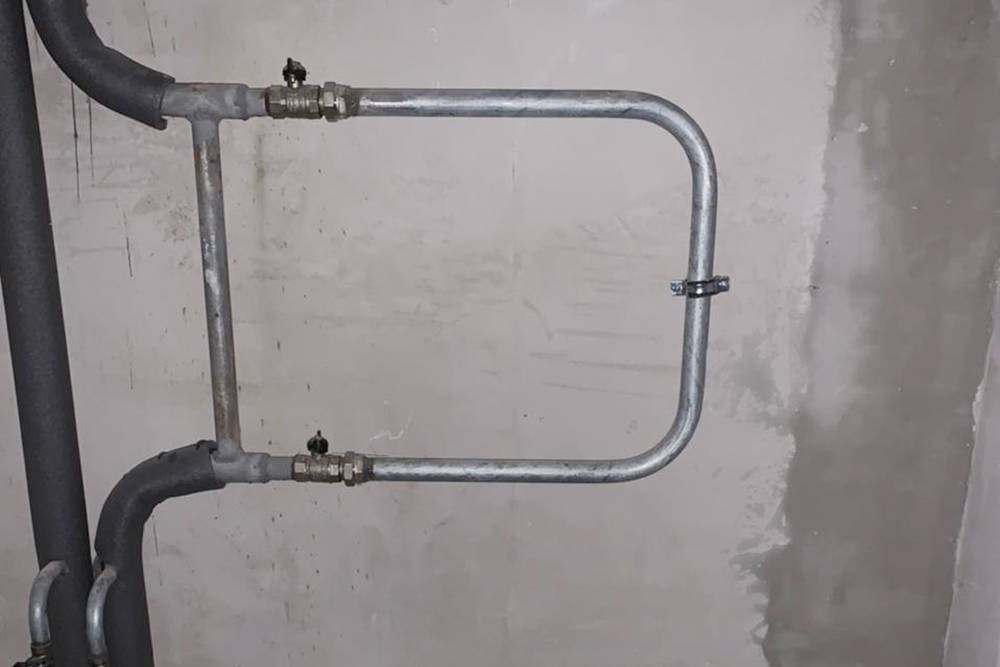 Чтобы не терять время, я съездил в «Леруа Мерлен» и купил полотенцесушитель, стальную трубу и кран-американку. К трубе мы потом приварили выводы для полотенцесушителя. А краном я регулирую напор воды и делаю полотенцесушитель горячее или прохладнее.