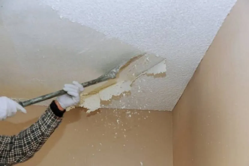 Отделка отлично ложится на бетонные и оштукатуренные поверхности. Материал не взаимодействует с полимерными составами. Если надо перекрасить цветной (темный) потолок, то придется убирать покрытие. Из-за низкой эластичности сырье не способно замаскировать трещины.