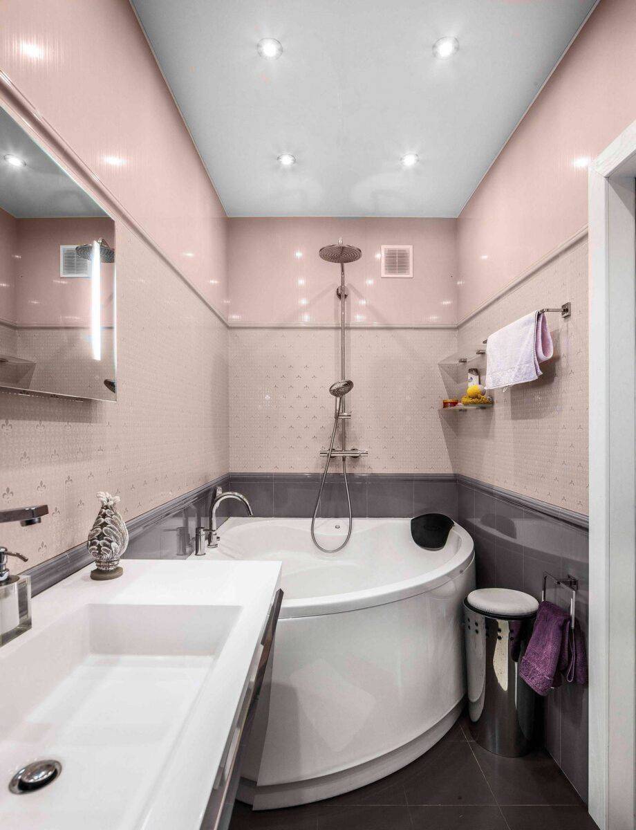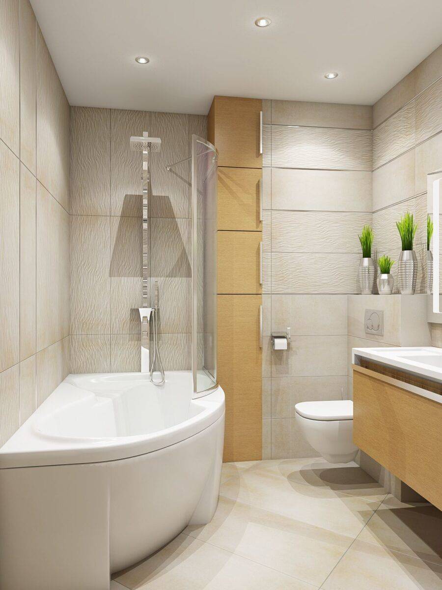 - Если душевая кабина категорически не подходит, стоит выбрать компактную угловую ванную – выглядит современно, позволяет экономить пространство.