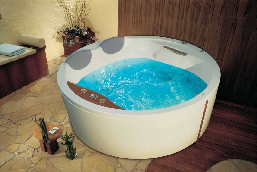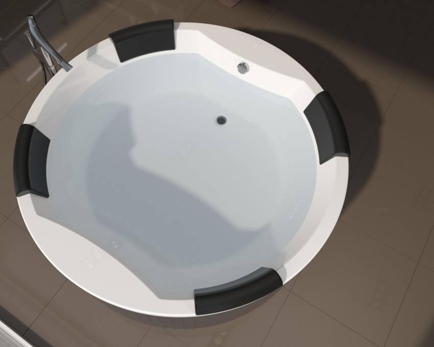 - Вместительность. Круглая ванна не может быть тесной. В такой емкости будет комфортно находиться очень полным людям, влюбленной паре, желающей уединиться, и детям, ведь уникальная ванна может легко превратиться в миниатюрный бассейн.