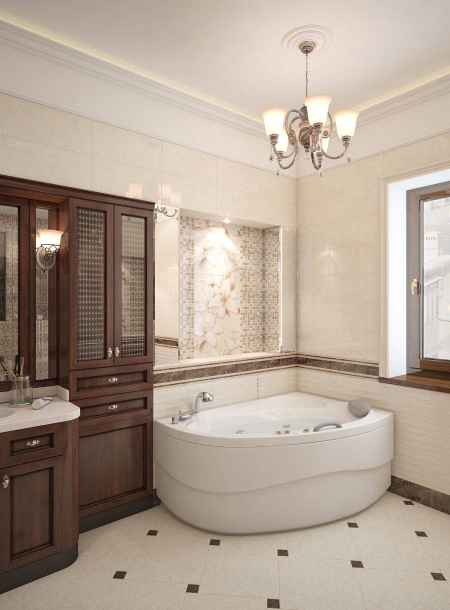 Дизайн ванной с угловой ванной, несомненно, оптимально сочетается с любым стилем интерьера (незаменимая классика, строгий скандинавский стиль, минимализм и хай-тек). К очевидным преимуществам выбора следует отнести: