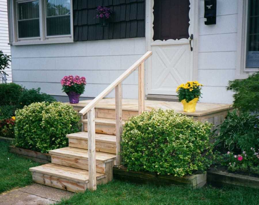 Аккуратное маленькое крыльцоДеревянное крыльцо с периламиДеревянное крыльцо без перилДеревянное крыльцо классической формы