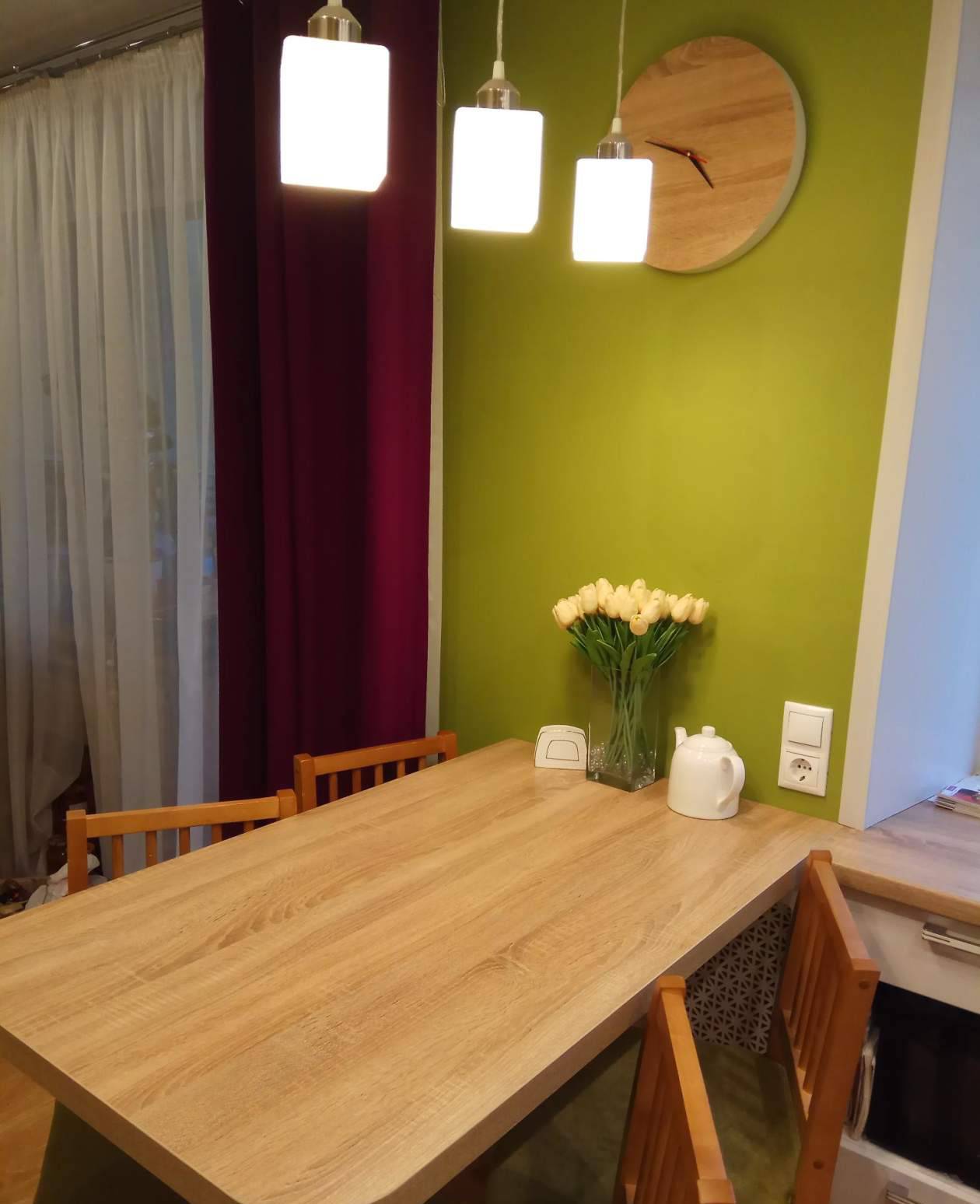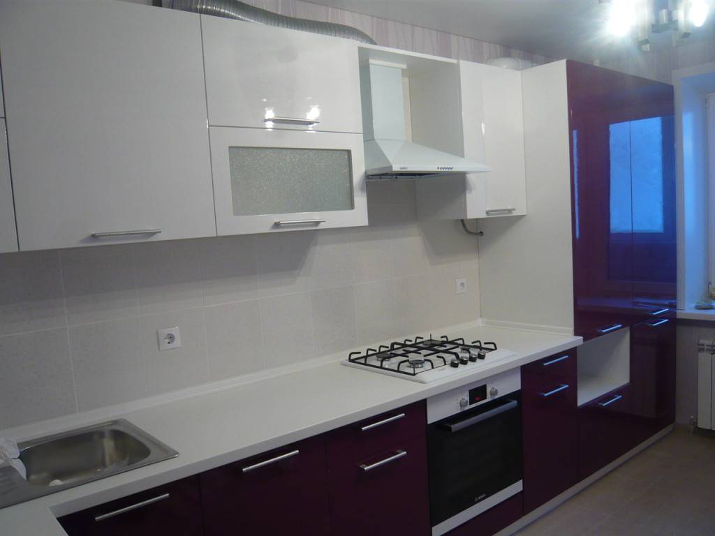 Если кухня отличается простором, то здесь есть поле для фантазии. Так, к примеру, на ней может быть установлена кухня угловая баклажан с белым. Дополнить ее можно островом с рабочей зоной или мойкой на поверхности. Обеденная зона, в свою очередь, располагается в отдельном месте кухни, которое выделено цветом или фактурой отделки.