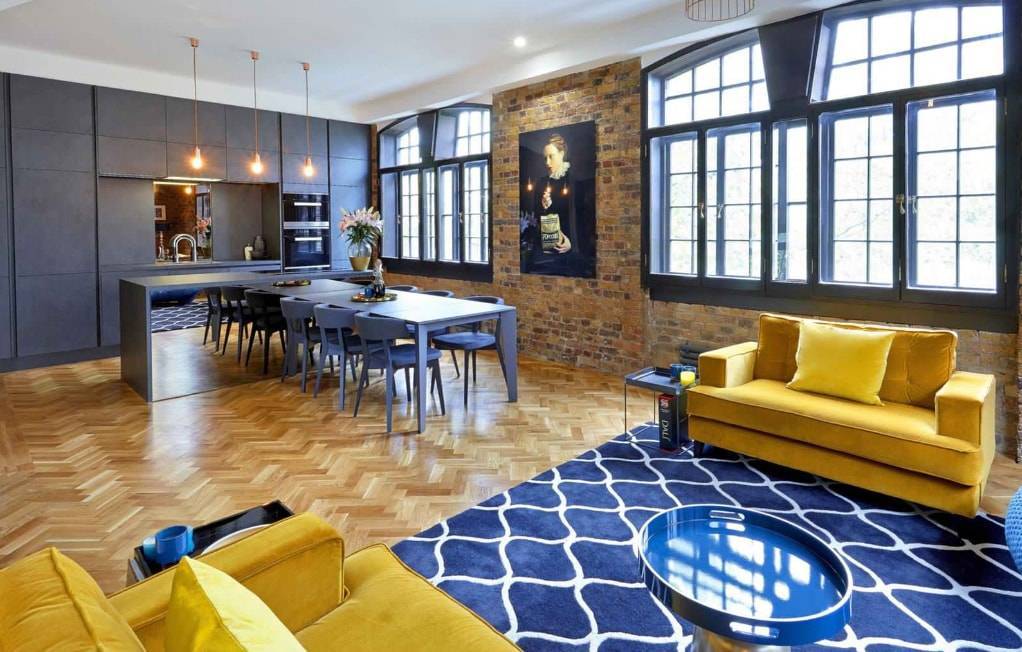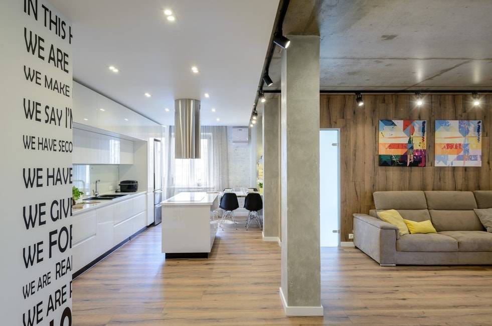 Еще один популярный выбор сегодня – лофт. Здесь пространство кухни-гостиной может быть дополнено и холлом. В итоге зона «холл-гостиная-кухня» становится центральной и занимает основную часть интерьера.
