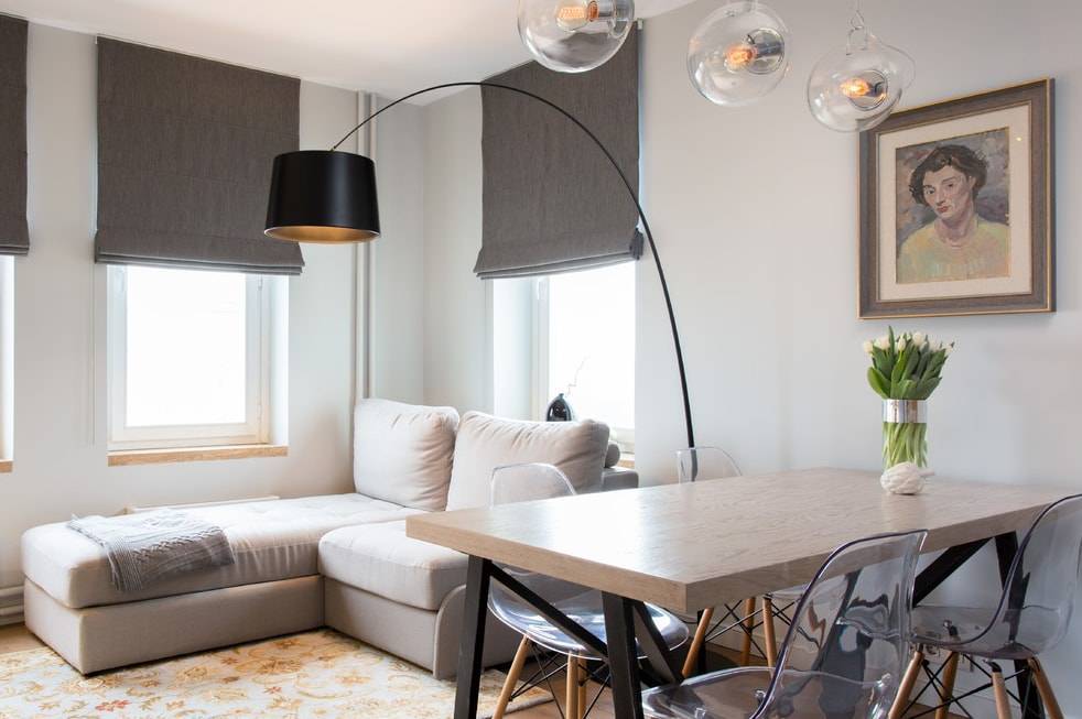 На обычном маленьком окне короткие римские шторы выглядят прекрасно. Но попытки использовать их на нестандартных больших оконных проёмах с кучей створок, эркерах и французских окнах всегда выглядят как неудавшийся компромисс.
