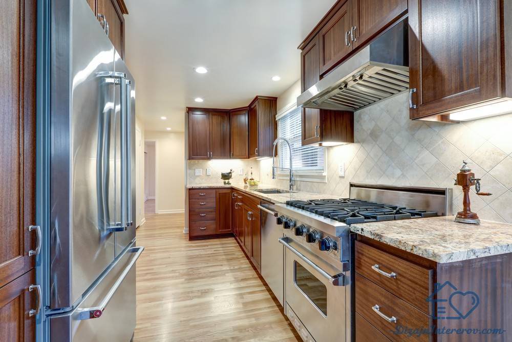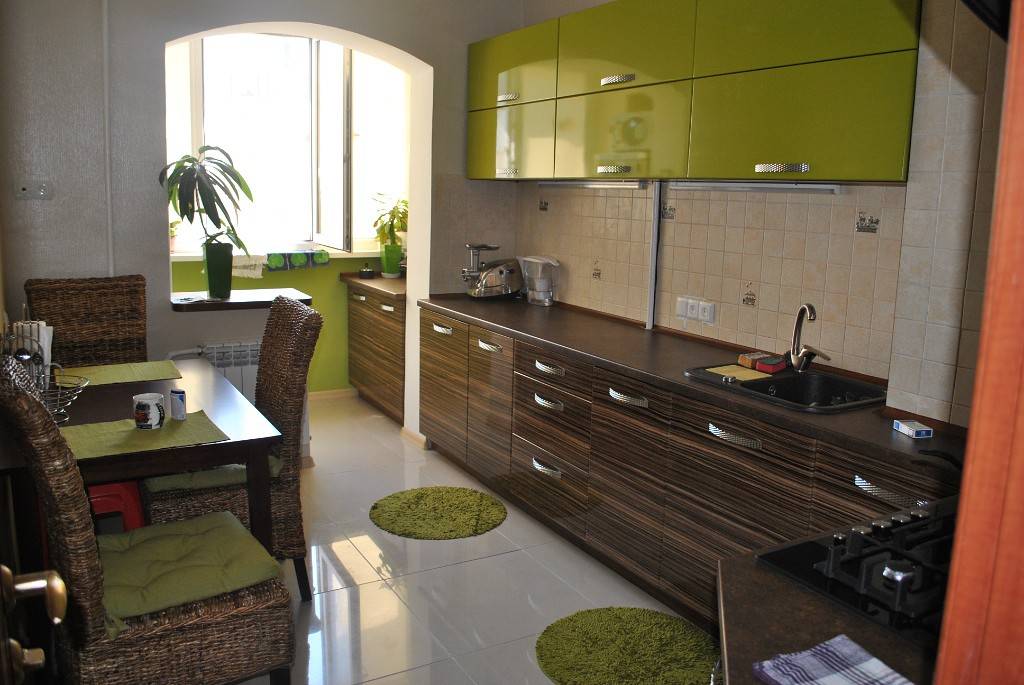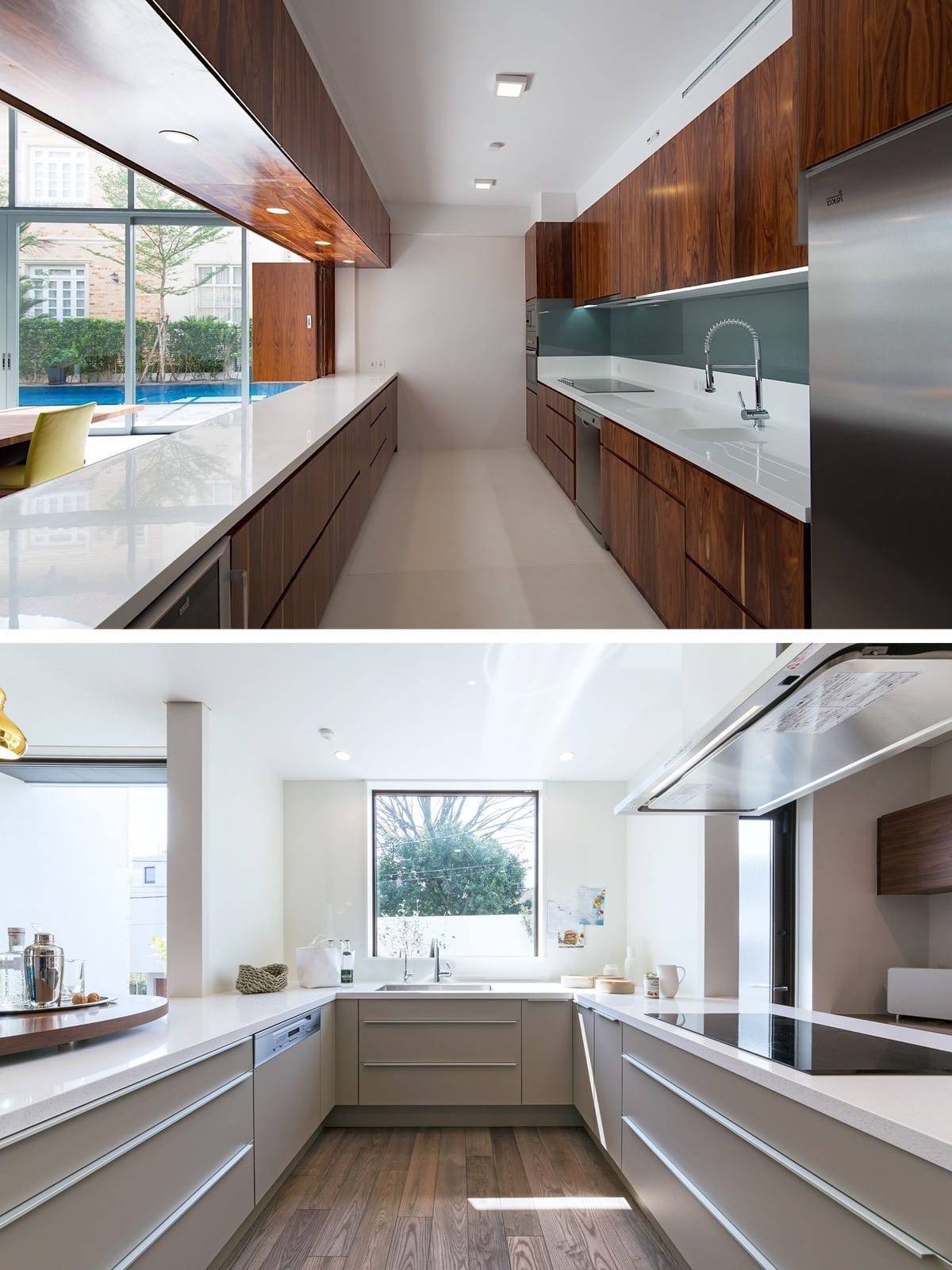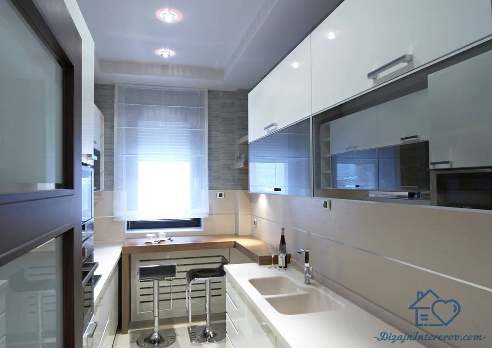 Как же правильно вписать объёмный предмет в узкую кухню? Зависит от планировки гарнитура.