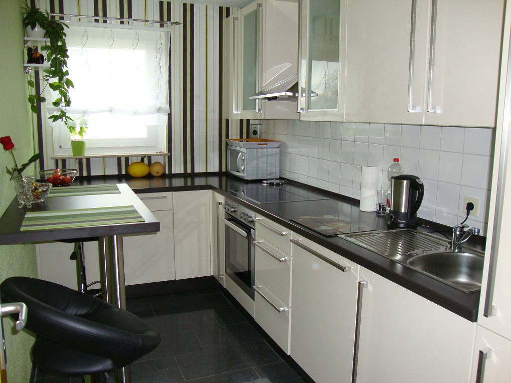 - При определении дизайна гарнитура необходимо учитывать его созвучие с интерьером в гостиной и других комнатах.