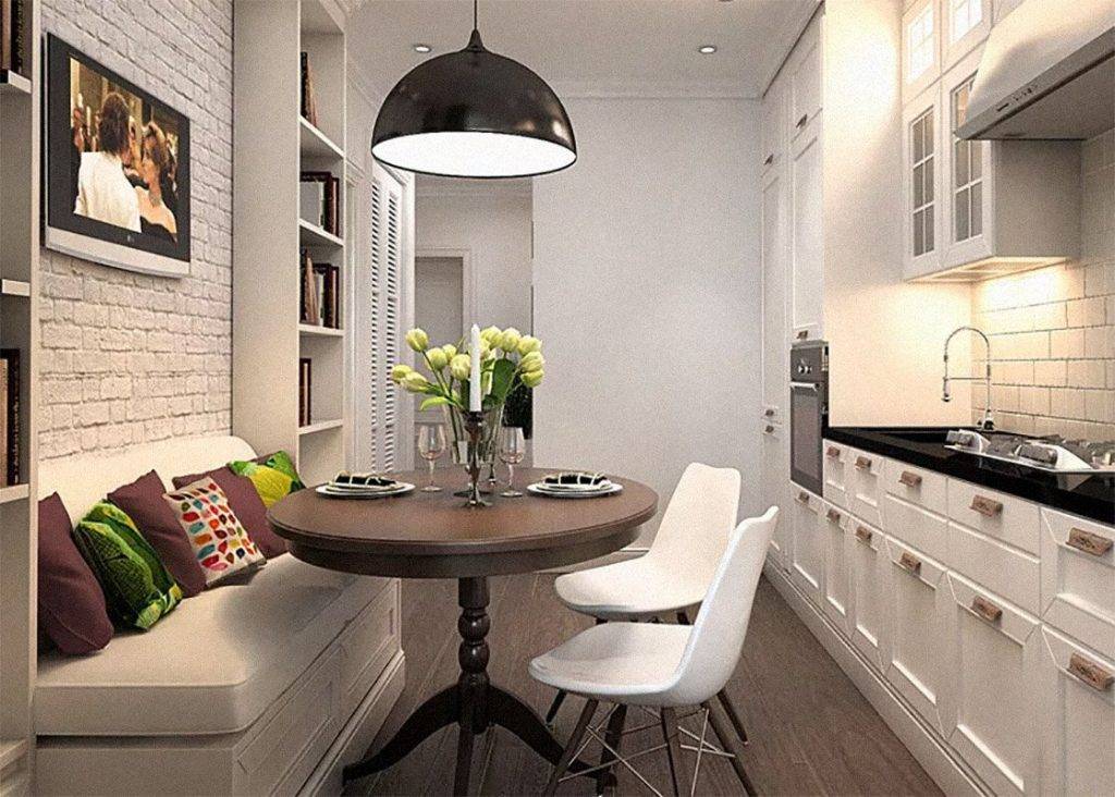 В маленькой кухне лучше вообще избегать такого объемного предмета мебели, как диван. Пусть даже кухонный и достаточно изящный, он все равно будет красть достаточно много пространства, и так находящегося в дефиците.