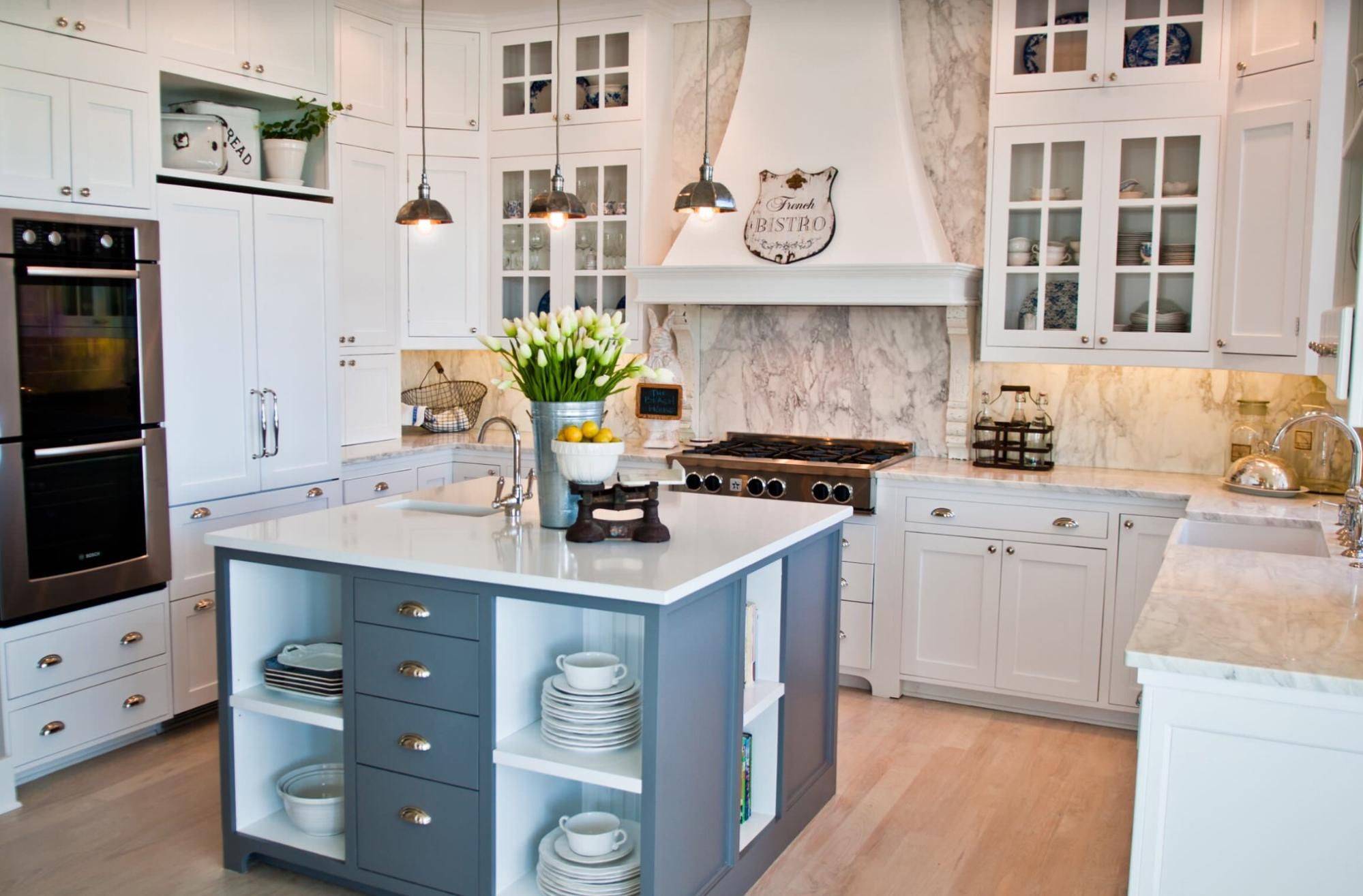 Некоторые острова имеют открытые полки. Расположите на них красивый сервиз и стильные аксессуары.