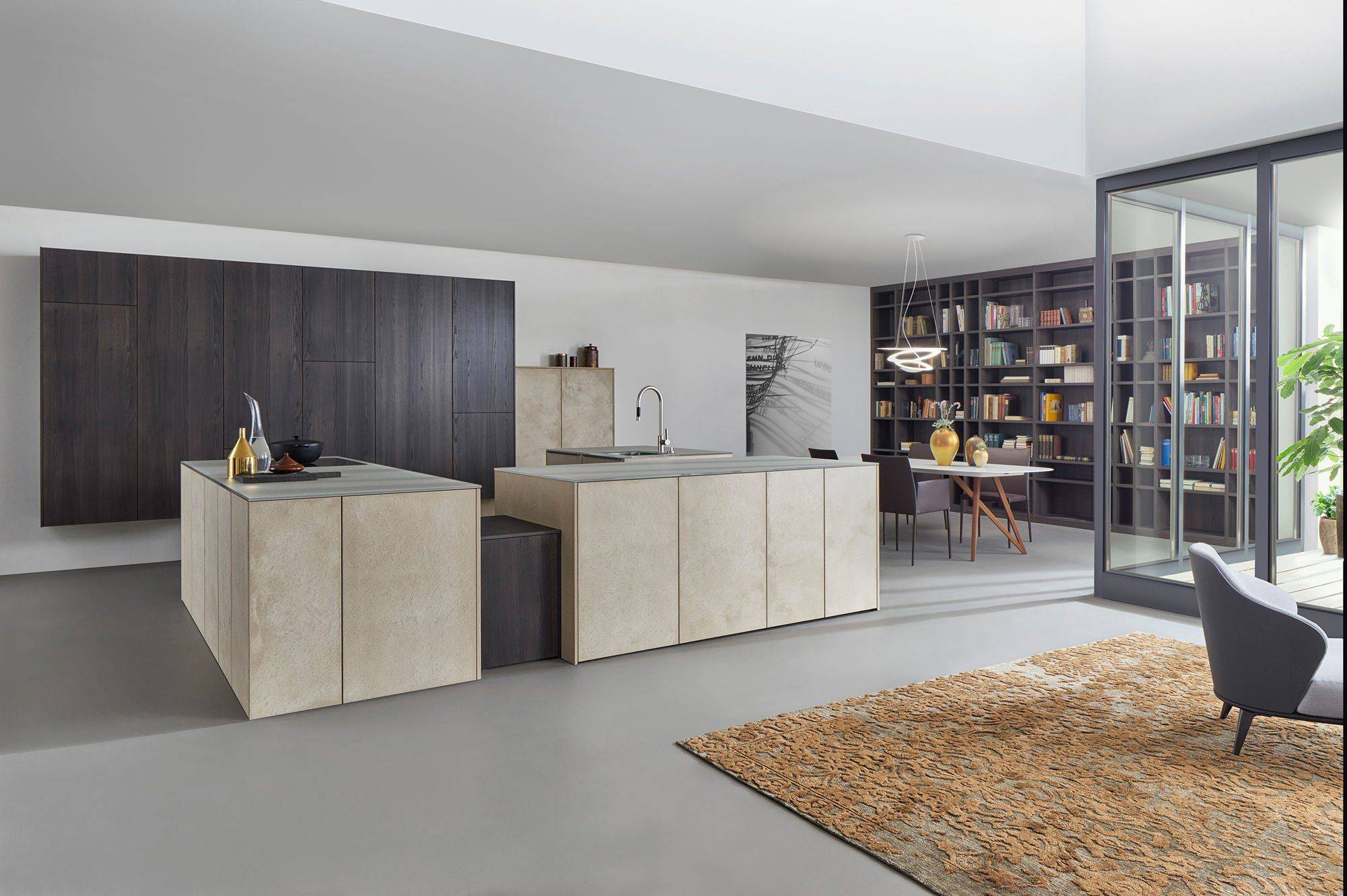 На фото кухонный остров немецких дизайнеров LEICHT Küchen из искусственного камня. Он задает тон всему интерьеру.