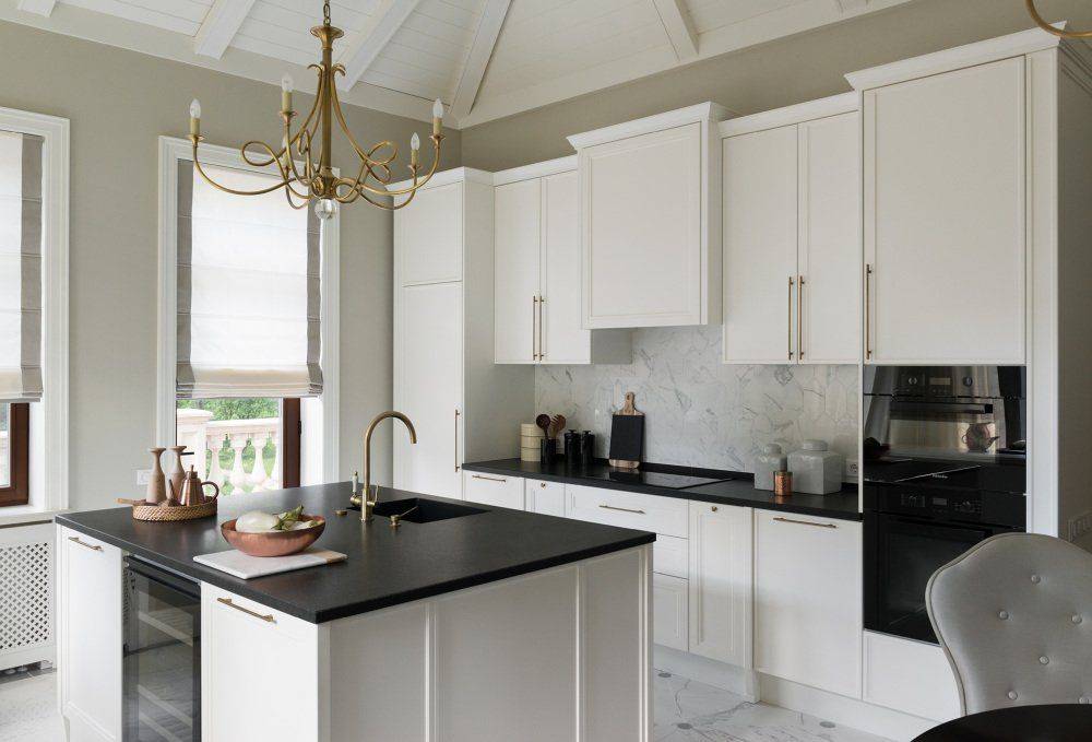 С помощью кухонного острова удобно отделять кухню, объединенную с гостиной, как мы сделали в одном из наших проектов.