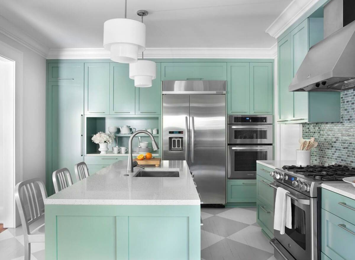 Универсальное правило для цветовой гаммы в интерьере кухни ¾ приглушенных пастельных оттенков с ¼ ярких и темных вкраплений.
