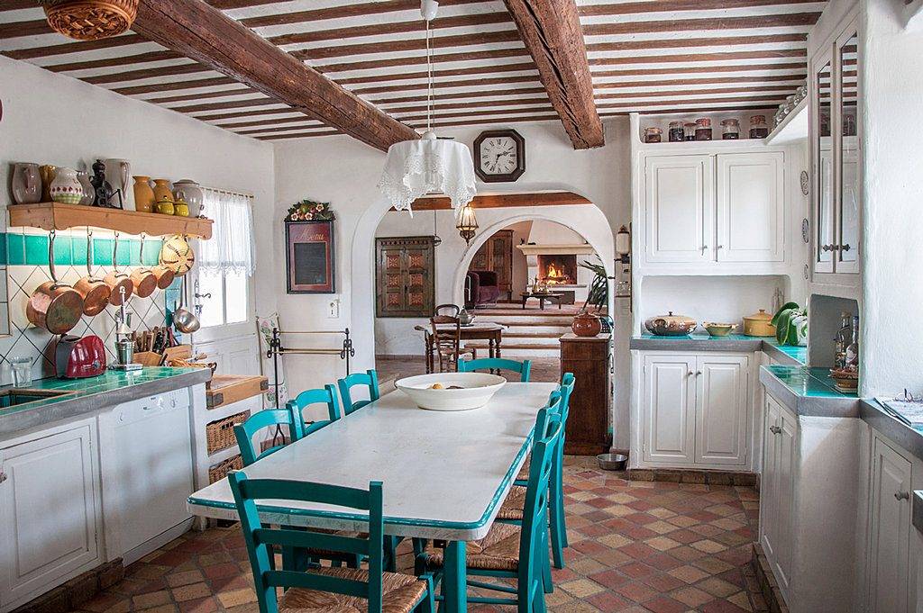 Если площадь и высота комнаты позволяют, деревянные потолочные балки идеально зададут атмосферу любому интерьеру в стиле прованс