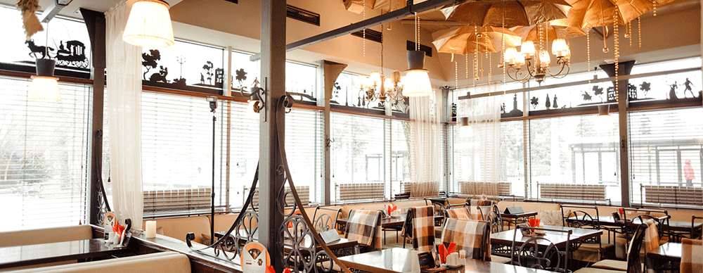 Полы. Они выполняются из натурального дерева (доска или паркет), однако сегодня рынок строительных материалов предлагает высококачественные аналоги, которые позволяют создать нужную атмосферу в кафе без лишних денежных трат. Керамическая плитка также широко используется: она более износоустойчива и неприхотлива в уходе.