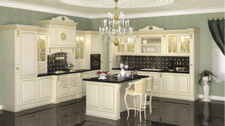 Дворцовый французский стиль в интерьере кухни способен подчеркнуть высокий