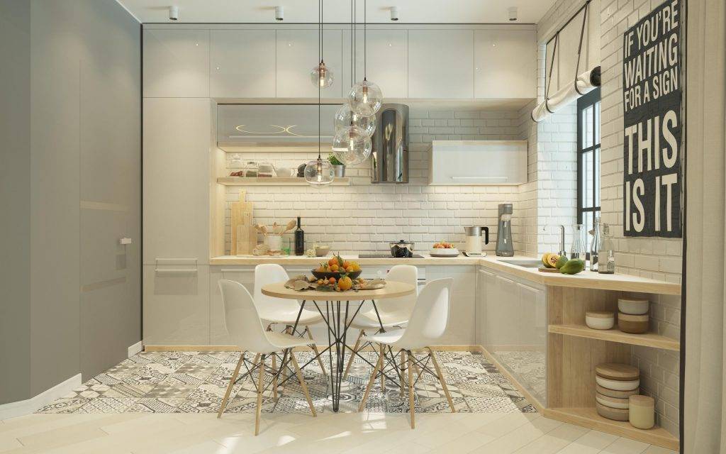 Также для светлых кухонь важным элементом является освещение. Его должно быть много. Помимо основного освещения, используют дополнительное, например, торшеры, бра, подсветку для кухонного гарнитура. Также с помощь света на кухне можно выделить зону готовки и обеденную зону.