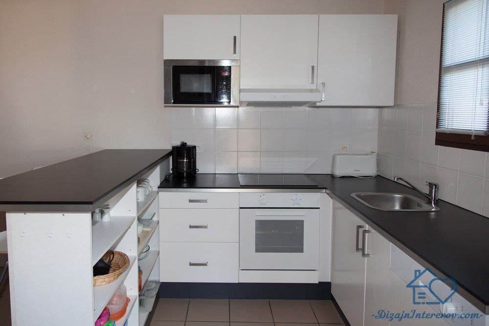 Тогда получится небольшое пространство для приготовления и достаточно просторное для приема пищи. Кстати, надо отметить, что приготовление пищи не всегда должно занимать огромное рабочее место. Достаточно содержать его в чистоте и максимально рационально использовать каждый полезный сантиметр площади.