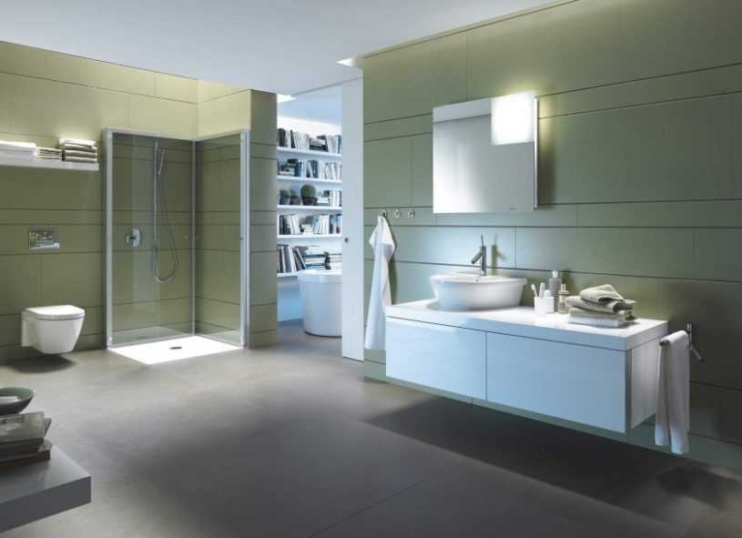 С целью экономии места используйте подвесные модели унитазов, компактные душевые кабины или ультрасовременный душ вровень с полом.