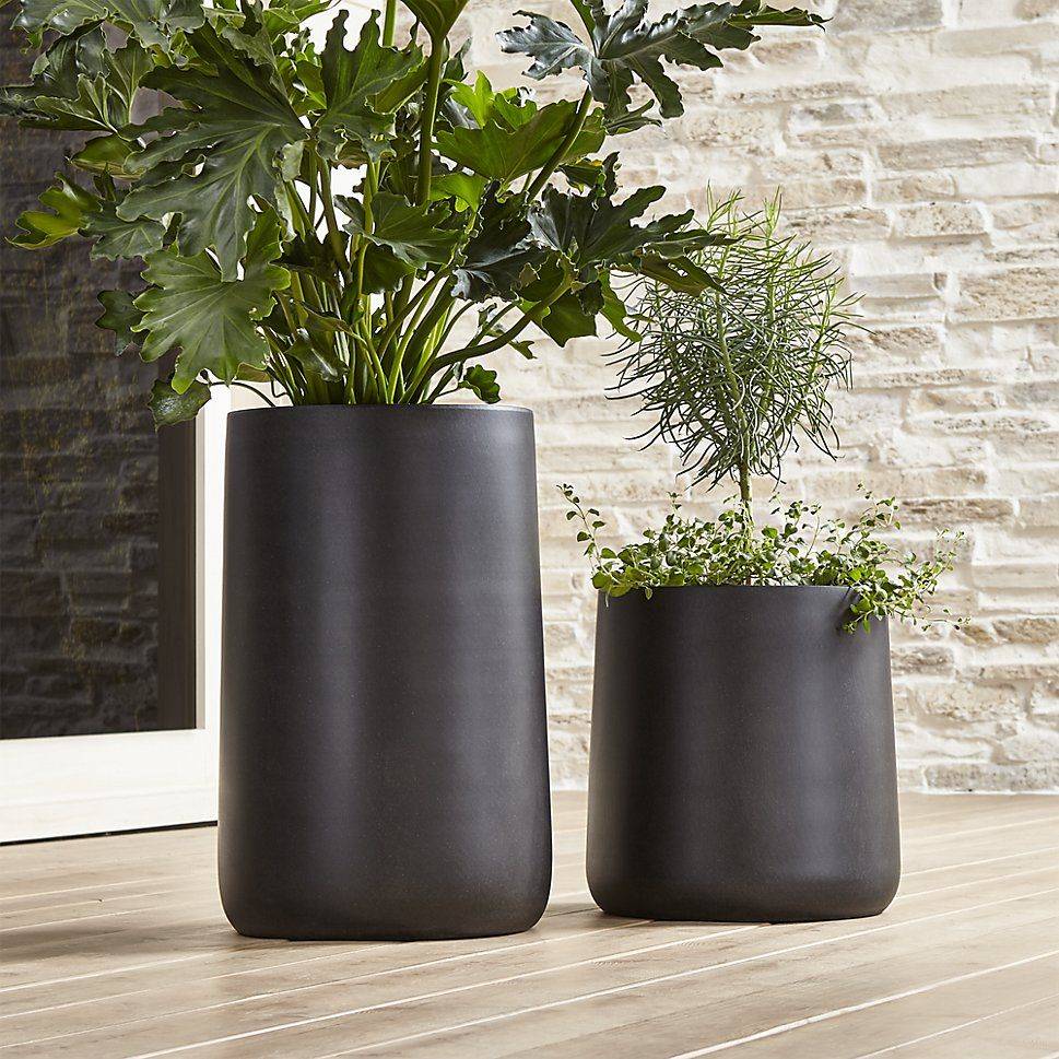 Модный тренд в ландшафтном дизайне это вазоны черного цвета. Сегодня принято использовать горшки огромных размеров. Самым стильным считается черный благородный цвет.