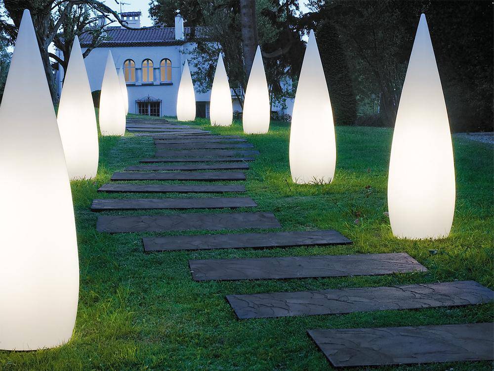 Очень важен творческий подход к освещению. Прожекторы, огни фей и столбики ушли в прошлое… Теперь используют крупные инновационные светильники для сада.