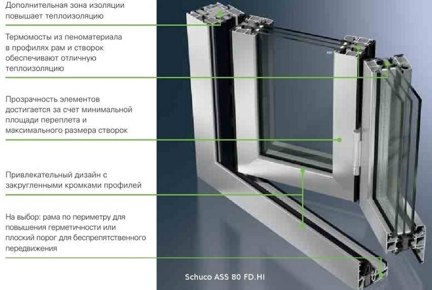 Устройство алюминиевого профиля для сдвижных окон и складывающихся дверей