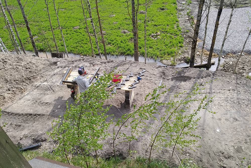 Так выглядело рабочее место во дворе, где разрезали, сваривали и шлифовали профили