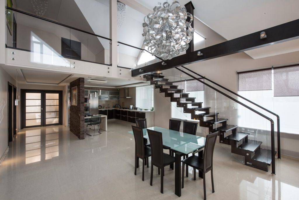 Такая лестница с алюминиевыми тетивами прекрасно впишется в стиль хай-тек
