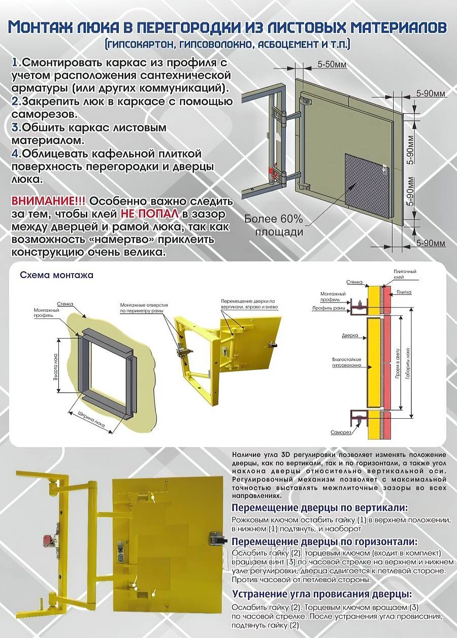 Размеры дверки. Соотношение параметров опорной рамы и самого люка может быть разным. Нужно четко определиться, сколько места потребуется для детального осмотра и ремонта коммуникаций.