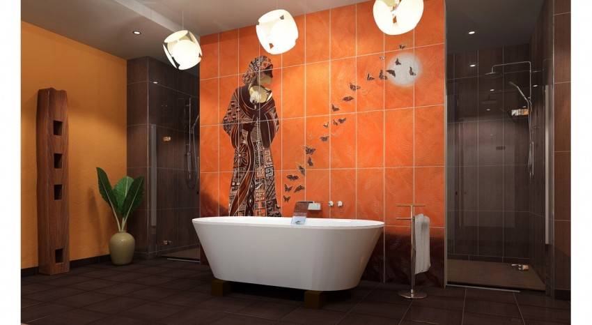 Огненный цвет, очень яркий, вызывающий сильное возбуждение. Рекомендован для больших ванных комнат. В интерьере ванной сочетается с белым, синим, серым цветами и имитацией древесины.